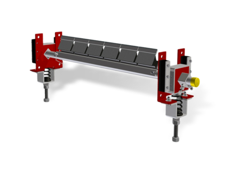 • Cojines amortiguadores de impacto. Tiene un aprisionamiento individual por hoja limpiadora para una efectiva limpieza a lo ancho de la icobandas transportadora. Lo anterior, sumado al ángulo de instalación protege la banda y los empalmes mecánicos o vulcanizados de la misma.